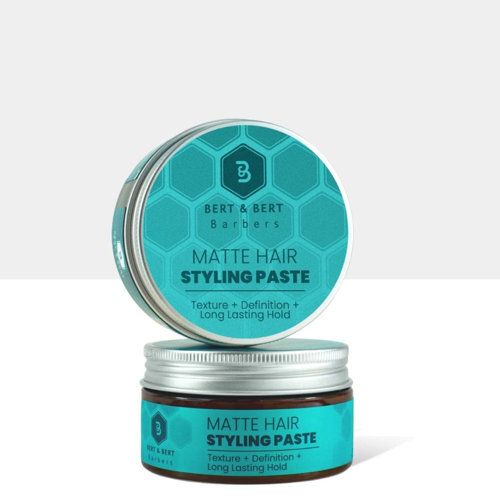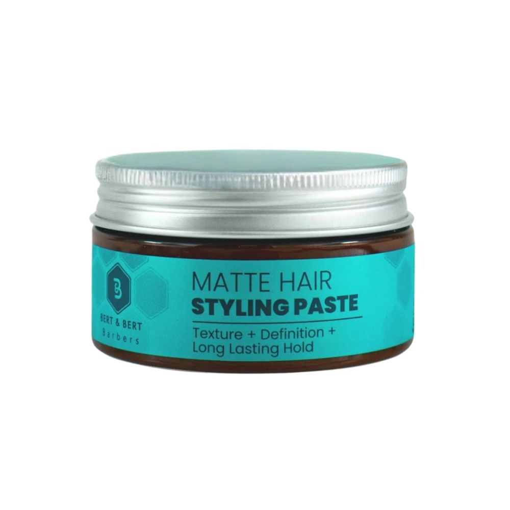 Textura, objem a přirozený matný styling během pár vteřin. Bert & Bert Matte Hair Styling Paste je stylingová pasta na vlasy, která pomáhá vytvořit texturovaný účes s přirozeným matným finišem. Díky včelímu vosku poskytuje pevnou, ale flexibilní fixaci a umožňuje účes během dne snadno upravovat. Glycerin navíc pomáhá vlasy kondicionovat a zanechává je jemné a upravené. Je ideální pro krátké i delší vlasy a skvěle se hodí pro přirozené messy účesy, „bed head“ styling nebo lehce uhlazené looky.
