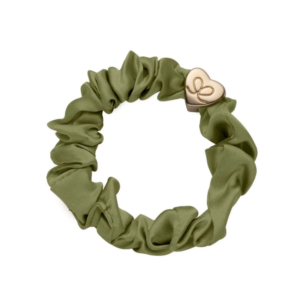 By Eloise Gold Heart Silk Scrunchie Mocha je malý klenot, který promění obyčejnou gumičku ve skutečný módní doplněk. Je vyrobená z luxusního hedvábí, které je k vlasům maximálně šetrné, chrání je před lámáním, třepením a nežádoucím krepatěním. Díky tomu zůstávají hladké, lesklé a zdravé. Olivový odstín se zlatým srdíčkem působí elegantně a vynikne nejen ve vlasech, ale i na ruce jako stylový náramek.