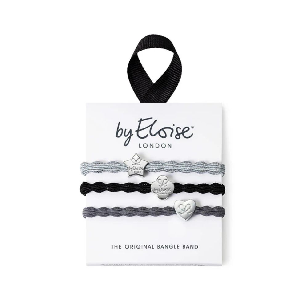 Dodej svému outfitu dotek luxusu ✨ s tímto stylovým setem gumiček od byEloise London! Kombinace Metallic Silver Star Silver, Metallic Silver Quatrefoil Black a Silver Heart Storm Grey je naprosto okouzlující – elegantní mix černé, šedé a stříbrných detailů, který dokonale doplní každý look. 🖤