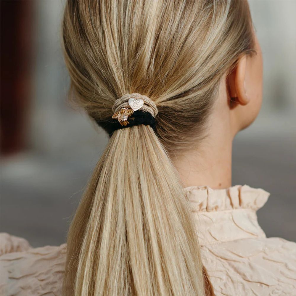 Dodej svému outfitu dotek luxusu ✨ s tímto elegantním setem gumiček od byEloise London! Kombinace Bling Bee Black a Metallic Gold Heart je dokonalým spojením elegance a stylu – černé detaily s jemným zlatým leskem působí nadčasově a chic. 💫