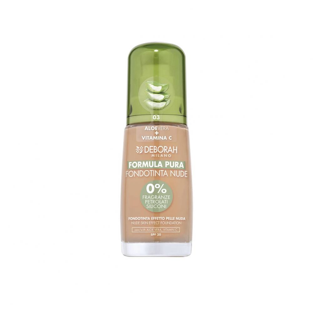 Make-up Nude z řady Formula Pura je ideální pro všechny typy pleti a obsahuje 98% přírodních složek. Fluidní, lehká a velmi pohodlná textura vytváří na pleti efekt druhé kůže.