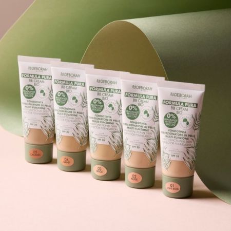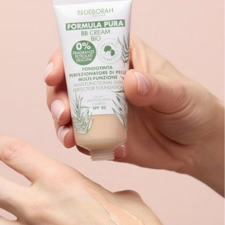 - BB krém Formula Pura BIO - je certifikovaný jako organický a veganský a jeho složení obsahuje 100% složek přírodního původu, z nichž 42% jsou organické složky. Lehká a hedvábná textura přirozeně splývá s pletí, dodává obličeji svěží a přirozený vzhled a působí jako skutečný univerzální zdokonalovač pleti s exkluzivními funkcemi v jednoduchém gestu: vyhlazuje pleť tím, že koriguje nedokonalosti a vyrovnává ji. Složení obohacené o aktivní složky chrání pleť před vnějšími vlivy, jako je znečištění a modré světlo z elektronických zařízení, a udržuje ji čistou a zdravě vypadající. Nekomedogenní BB krém Bio prošel dermatologickými testy i na citlivé pleti. Ochrana proti UV záření díky SPF20. Obal je vyroben z 50% recyklovaného plastu s ohledem na životní prostředí.
