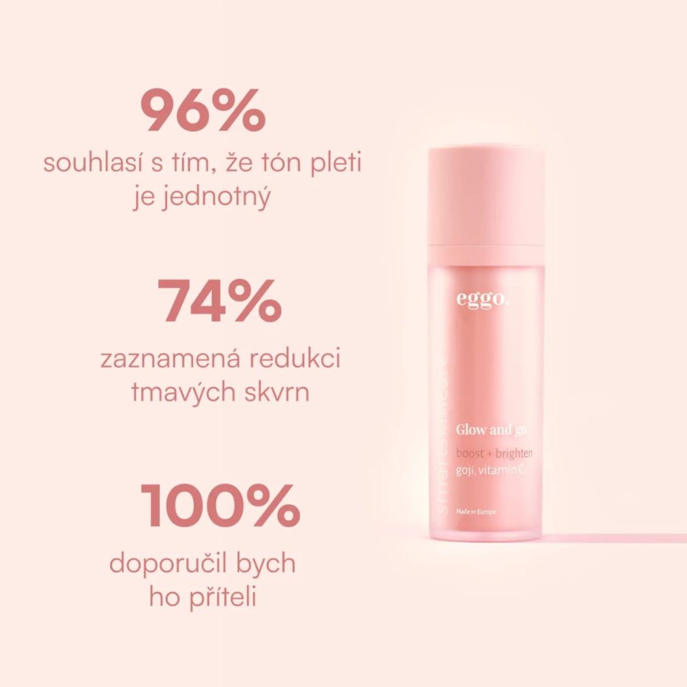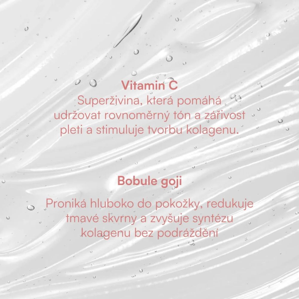 Glow and Go kombinuje stabilní formu vitamínu C (askorbyl glukosid) s extrakty goji bobulí, které společně: