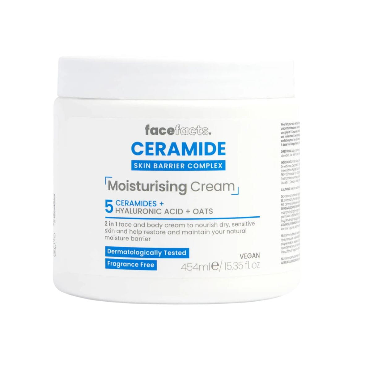 Intenzivní hydratace a silnější kožní bariéra každý den. Face Facts Ceramide Moisturising Body Cream je vyživující tělový krém, který pomáhá dodat pokožce hloubkovou hydrataci a zároveň posilovat její ochrannou bariéru. Díky komplexu 5 ceramidů, kyselině hyaluronové a zklidňujícímu ovsu pomáhá pokožku vyživit, zjemnit a chránit před ztrátou vlhkosti. Lehká, ale výživná textura se rychle vstřebává a zanechává pokožku jemnou, hladkou a komfortní i při každodenním používání.