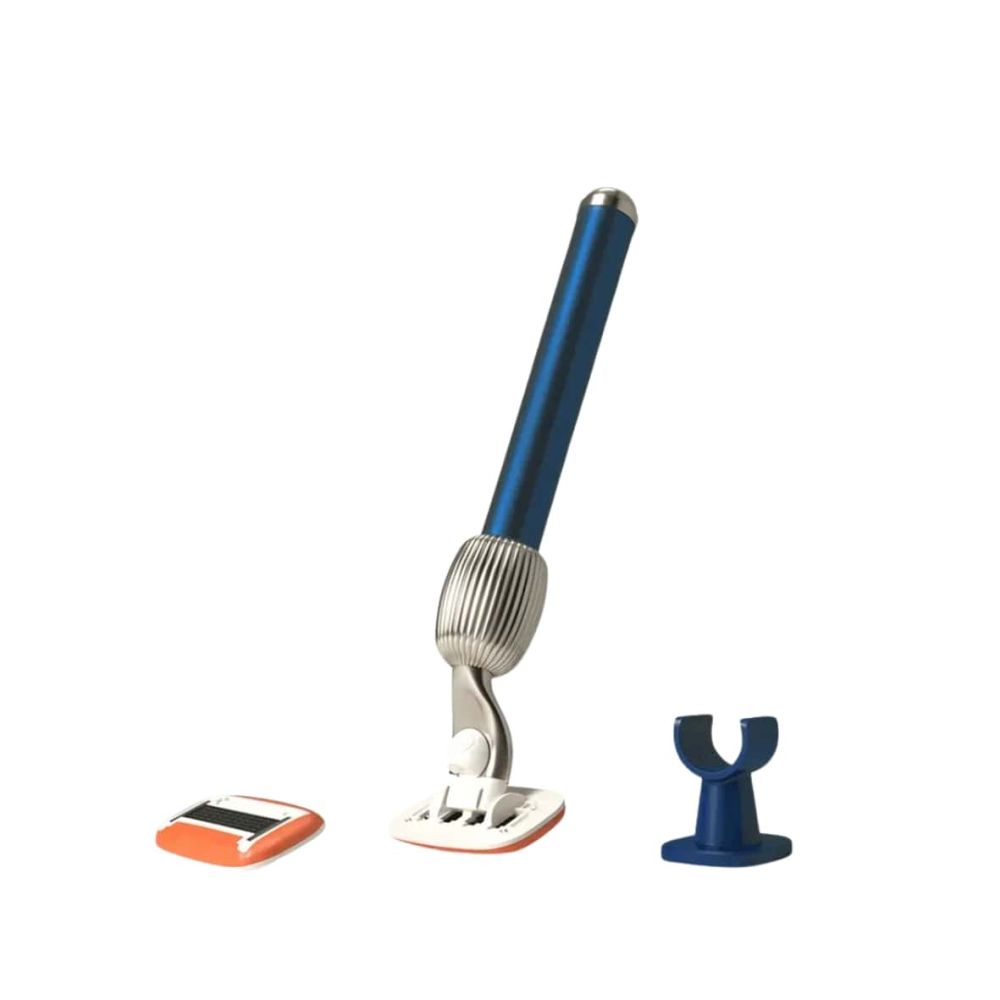Sada obsahuje: Hliníkový holící stojek, držák do koupelny a 2 pětibřité hlavice s lubrikačním kroužkem.