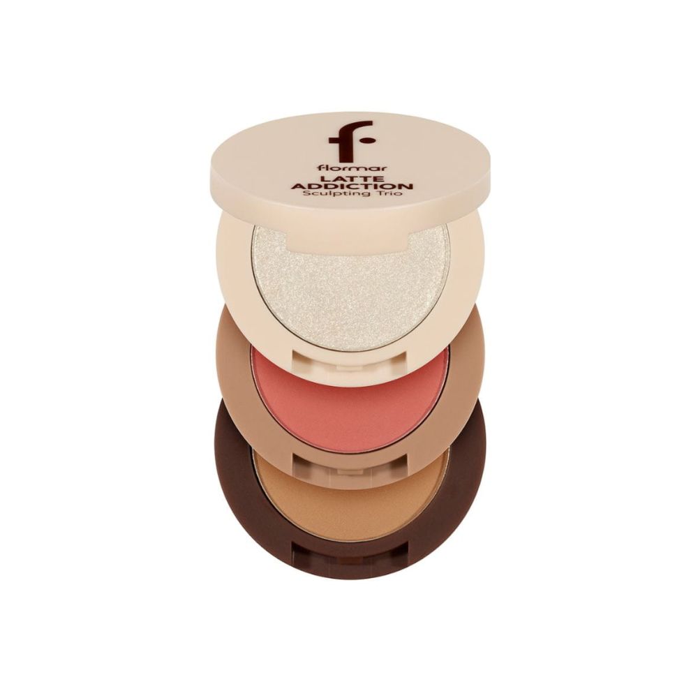 Jedna paletka, kompletní glow look. Flormar Latte 3-in-1 Face Palette spojuje bronzer, tvářenku a rozjasňovač v dokonale sladěných coffee tónech, které spolu vytvářejí harmonický, teplý a přirozeně zářivý vzhled. Každý odstín je navržen tak, aby se vzájemně doplňoval – bronzer zahřeje pleť, tvářenka dodá svěžest a highlighter přinese jemný luminózní efekt. Výsledkem je vyvážený, sjednocený make-up bez těžkého pocitu.