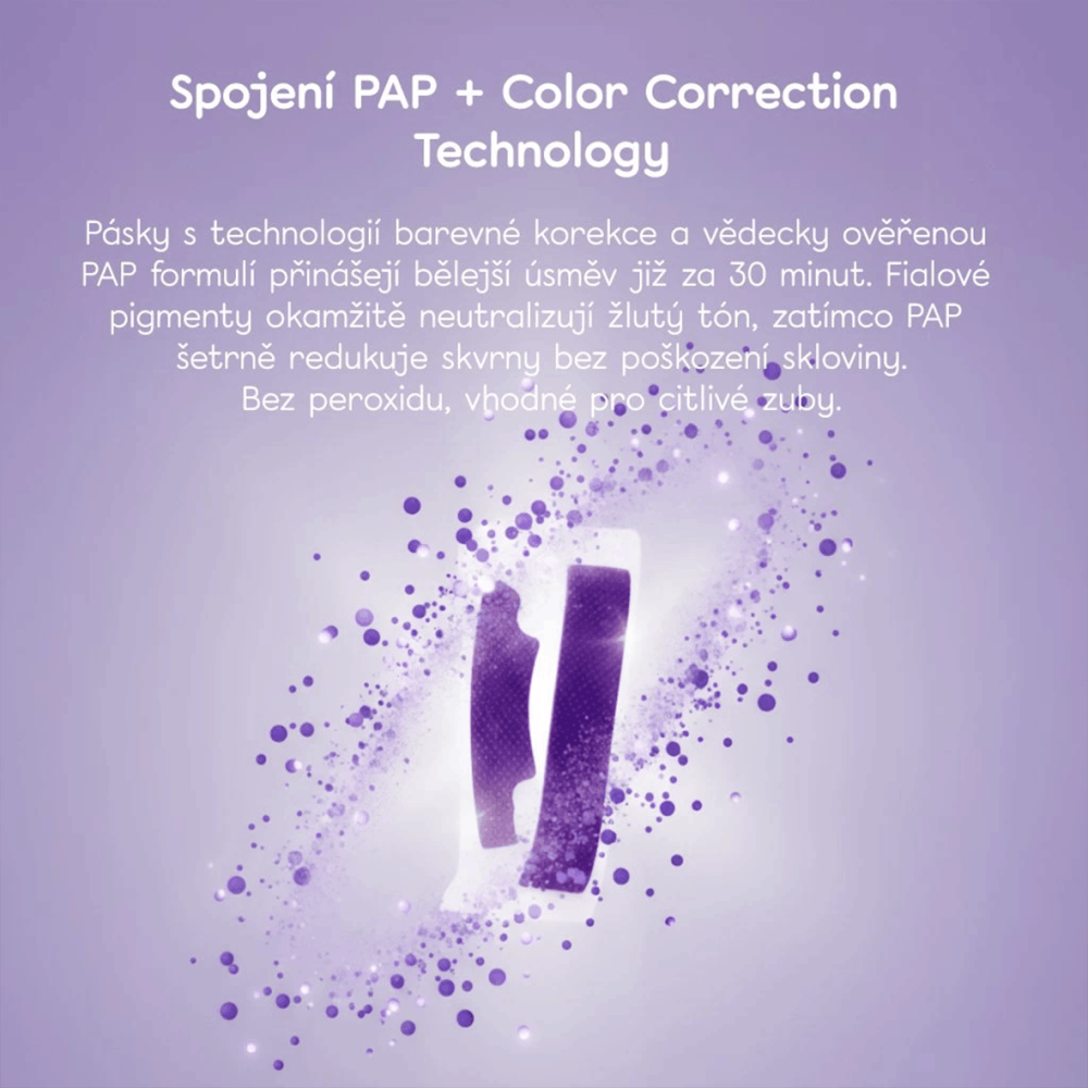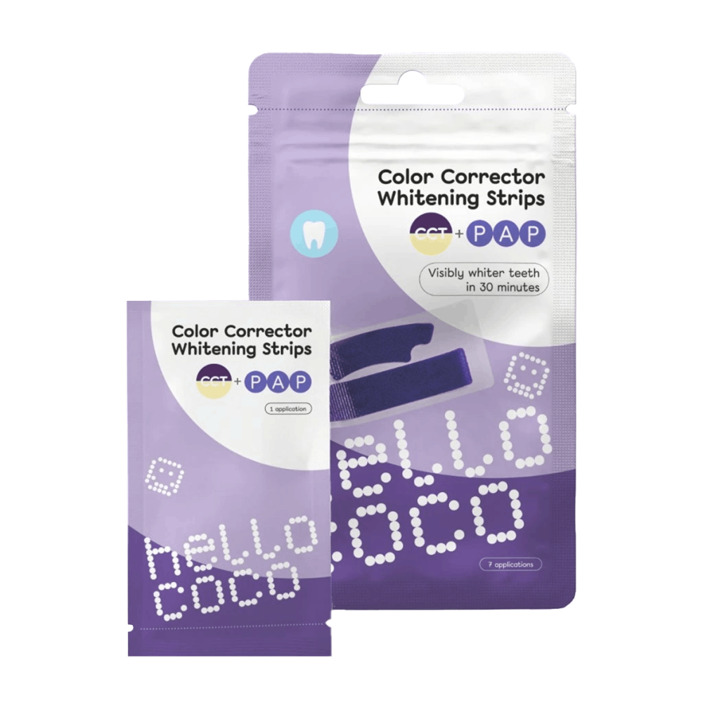 Hello Coco CCT PAP bělicí pásky kombinují technologii barevné korekce (CCT) a klinicky ověřený PAP bělicí vzorec, díky kterému dochází k okamžitému optickému zesvětlení a postupnému bělení zubů. Ideální volba, pokud chceš rychlý wow efekt i dlouhodobé výsledky – bez bolesti a bez citlivosti.