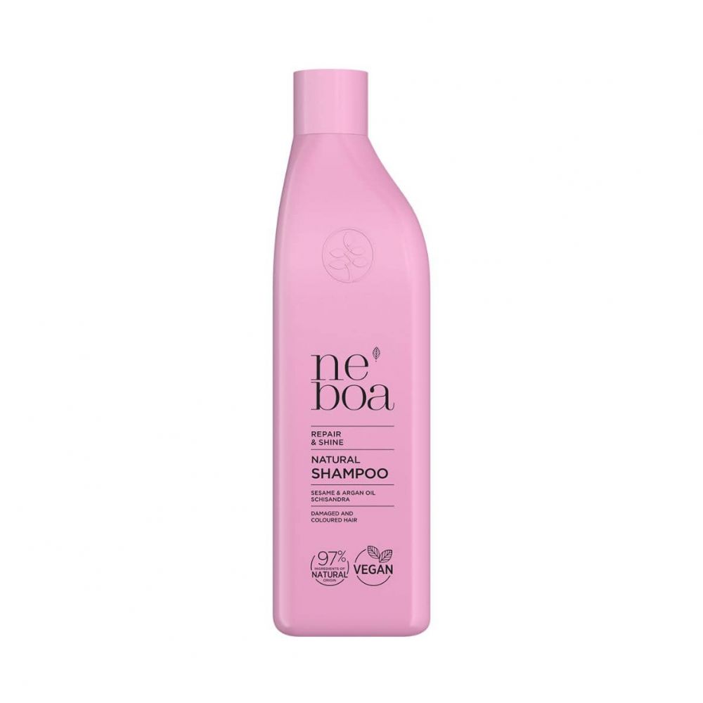 Přírodní regenerační šampon Neboa Repair & Shine, je ideální na poškozené a barvené vlasy. Účinně čistí pokožku hlavy a vlasy pomocí jemných čistících látek, aniž by je vysušoval. Sezamový a arganový olej regeneruje, hydratuje a posiluje vlasy, obnovuje jejich hebkost a pružnost. Schizandra (rostlina bohatá na antioxidanty) vyživuje pokožku hlavy a dodává vlasům hebkost.