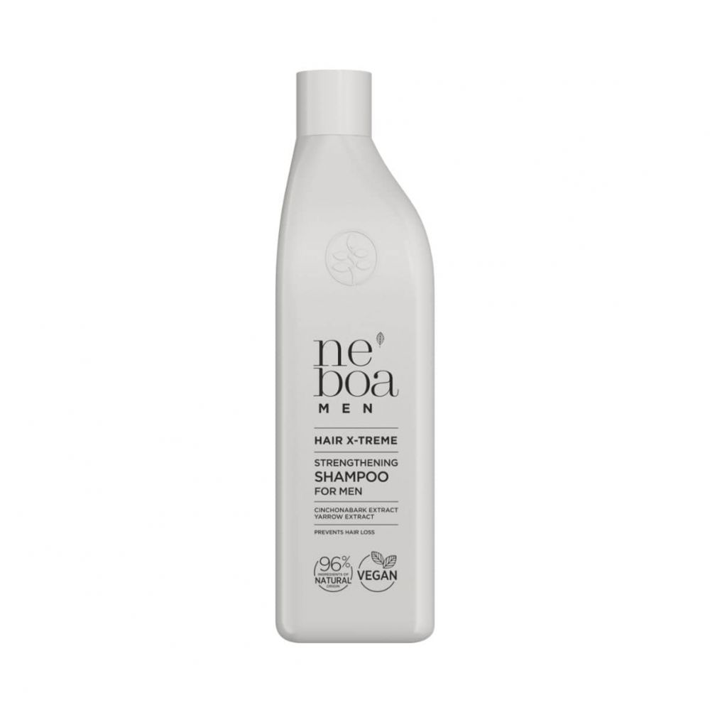 Přírodní posilující šampon Neboa Men Hair X-treme, účinně čistí pokožku hlavy. Vlasy hydratuje, omezuje jejich vypadávání a stimuluje jejich růst. Zklidňuje podrážděnou a problematickou pokožku hlavy.