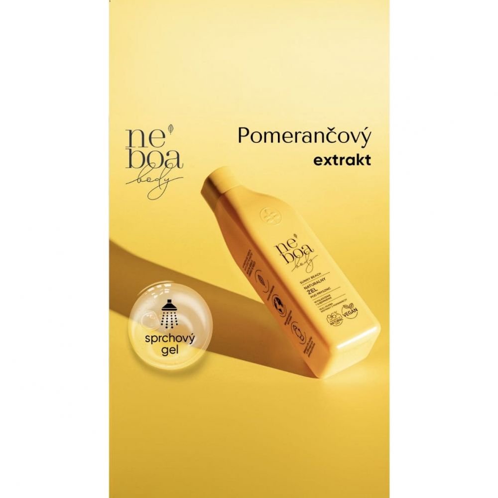 Přírodní sprchový gel Neboa Sunny Beach, jemně čistí a dodává pokožce pocit svěžesti a uvolnění. Jojobový olej má vyhlazující účinky a dodává pokožce elasticitu. Výtažek ze sladkého pomeranče pokožku hydratuje a dodává ji zářivý lesk. Vůně inspirovaná létem osvěžuje a dodává energii. Každodenní péče o tělo se tak stává potěšením.