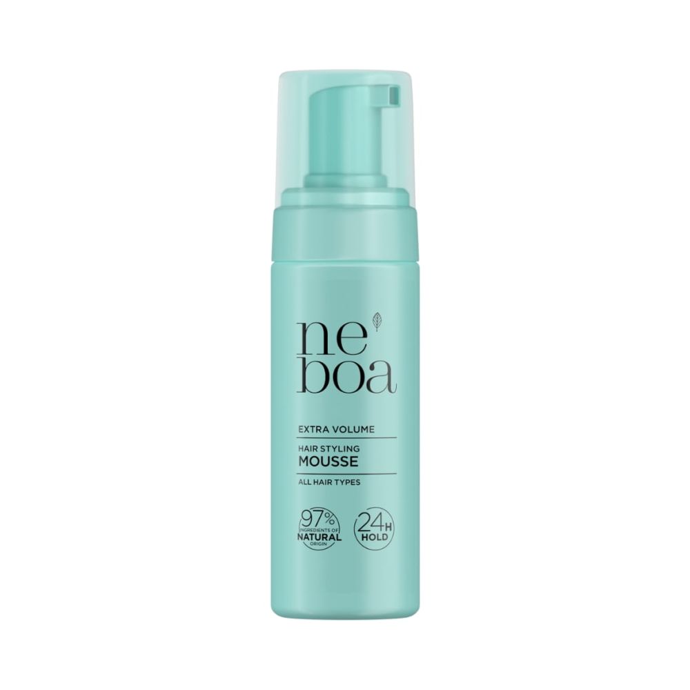 Přírodní stylingová pěna Neboa Extra Volume, má jedinečnou recepturu obsahující hrachové proteiny, které dodávají vlasům objem a pružnost. Biotin a výtažek z kopřivy vlasy posilují, hydratují a dodávají jim přirozený lesk. Komplex ceramidového oleje chrání vlasy před poškozováním během stylingu. Pěna nadzvedává vlasy u kořínků a dodává jim maximální objem, zabraňuje krepatění a elektrizování vlasů. Usnadňuje styling a podporuje regeneraci poškozených a suchých vlasů.