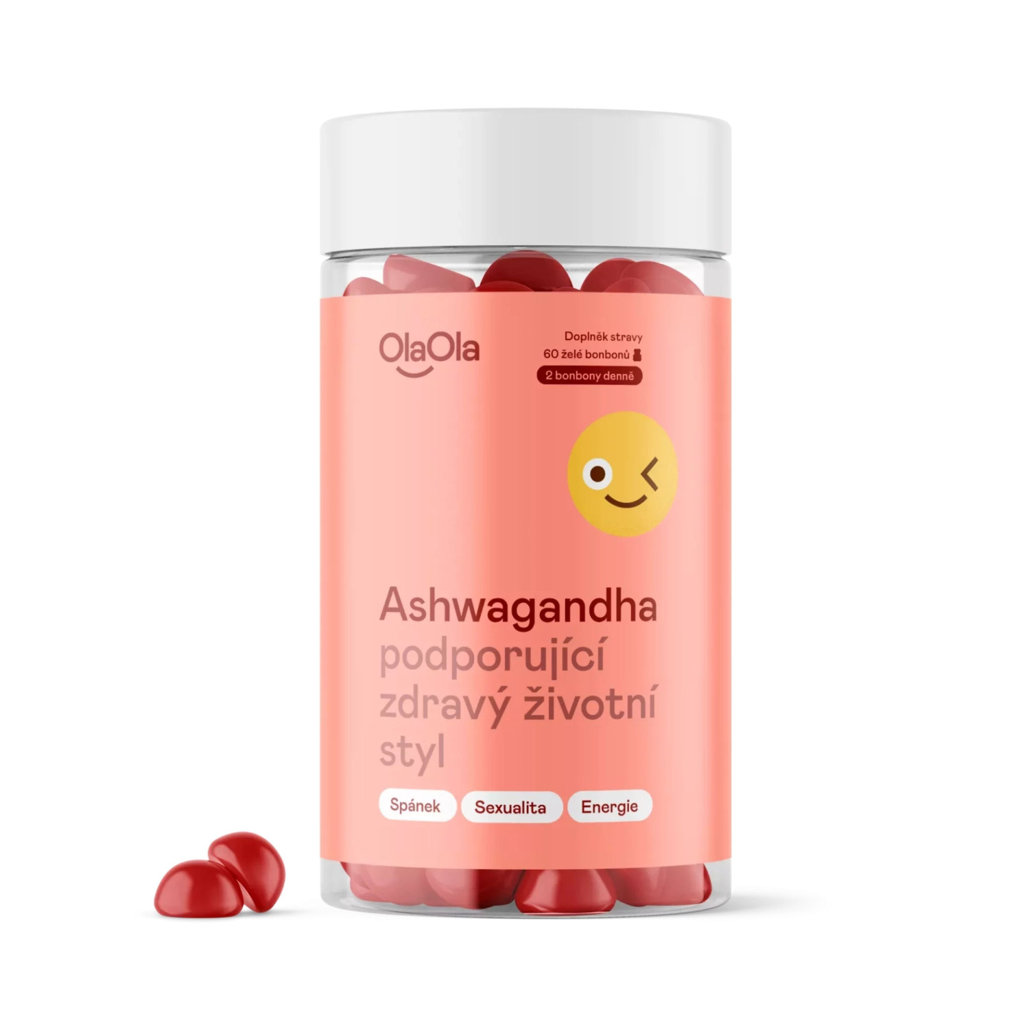 Glukózový sirup, sacharóza, voda, extrakt z ašvagandy 10:1 (Withania somnifera), pektin, koncentrovaná jablečná šťáva, regulátory kyselosti (kyselina citronová, citrát sodný), přírodní aroma, leštící látka (karnaubský vosk, rostlinný olej), koncentrát z černé mrkve, vitamin B6