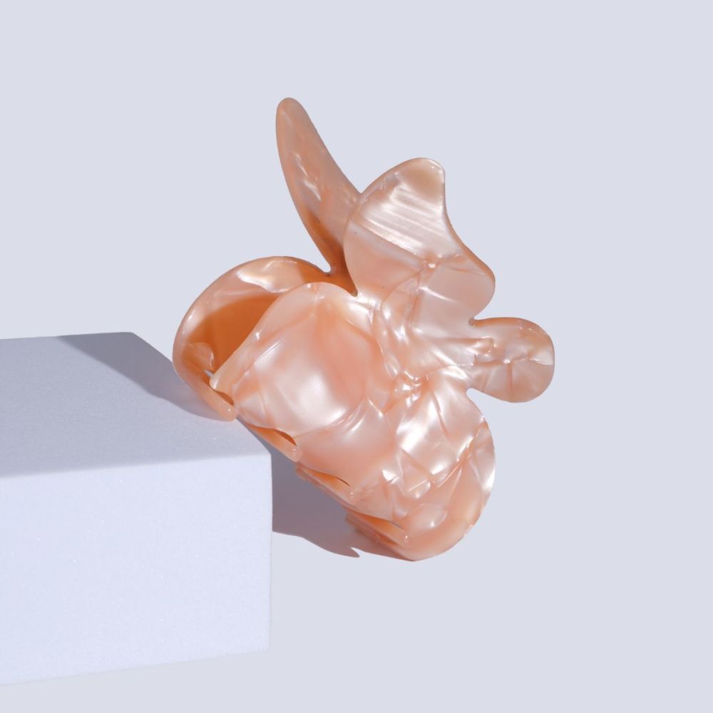 Stylový skřipec ve tvaru motýlka v jemné broskvové barvě s perleťovým efektem. Praktický doplněk, který tvým vlasům dodá šmrnc a zároveň je spolehlivě udrží na místě.